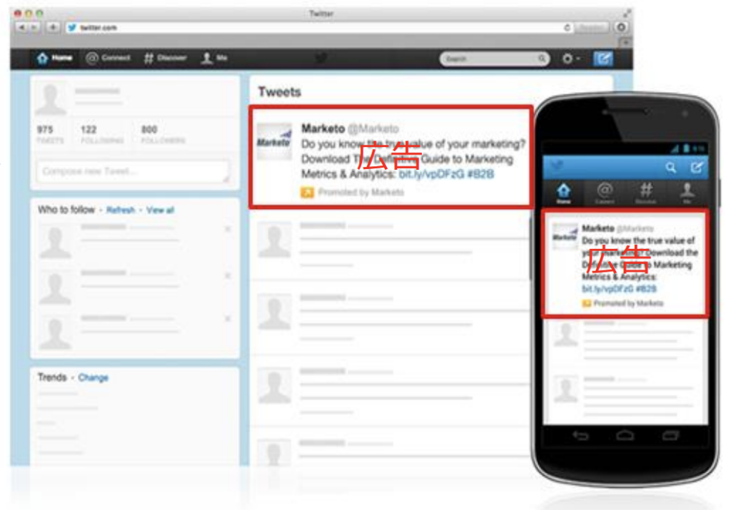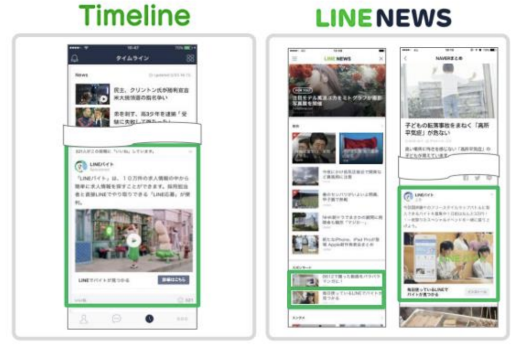 各ソーシャルメディア上のタイムラインに一般の投稿と同じ形式で広告出稿が可能な為、に視認率が高い傾向にあります。