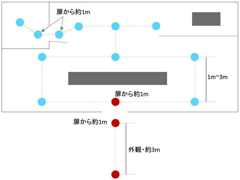 • 扉がある場合は前後1mを撮影します。
