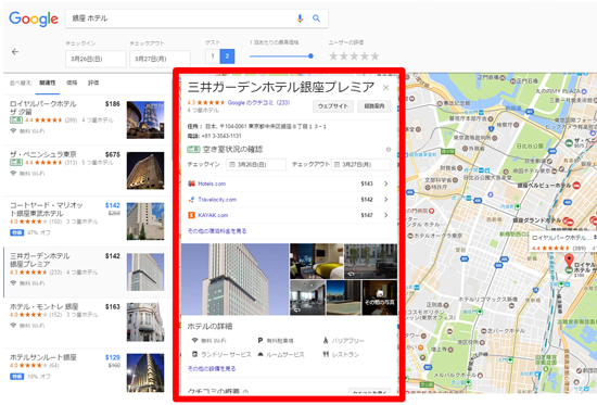 Googleホテル検索(googleマイビジネスエリア)